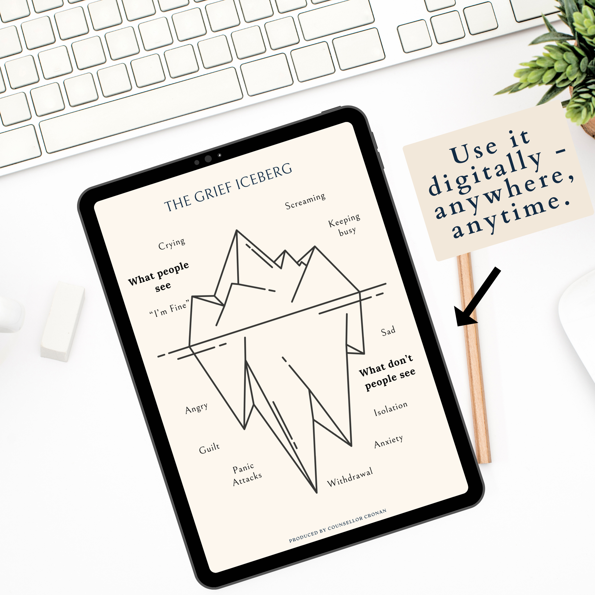 - The Iceberg Model of Grief: An insightful visual that illustrates the often unspoken and hidden layers of grief, helping you recognize and acknowledge feelings that are submerged beneath the surface.