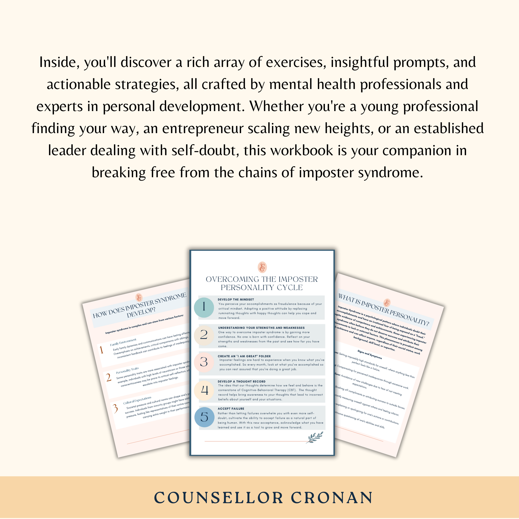 Inside, you'll discover a rich array of exercises, insightful prompts, and actionable strategies, all crafted by mental health professionals and experts in personal development. Whether you're a young professional finding your way, an entrepreneur scaling new heights, or an established leader dealing with self-doubt, this workbook is your companion in breaking free from the chains of imposter syndrome.