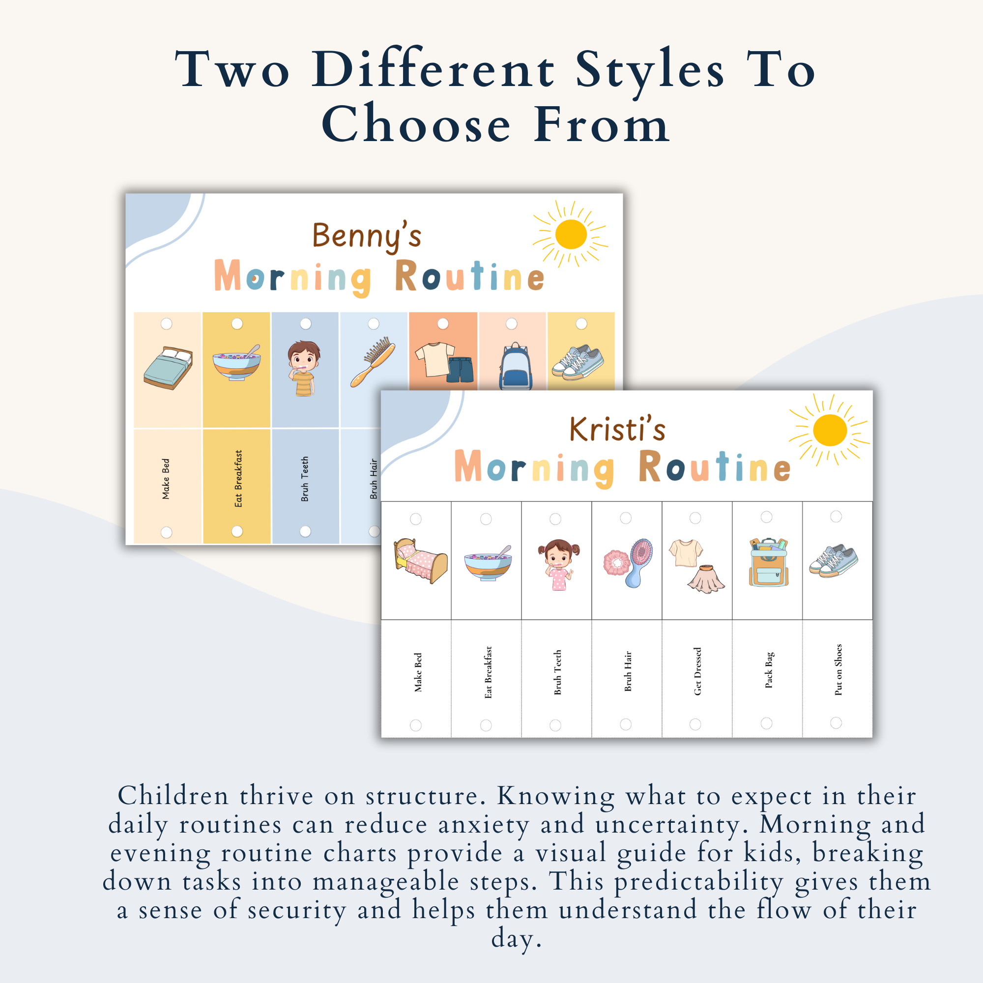 - Editable in Canva: Personalize your charts effortlessly! Our templates are designed for easy editing in Canva—no expert design skills needed. You can create unique routines that cater to your child’s specific needs.