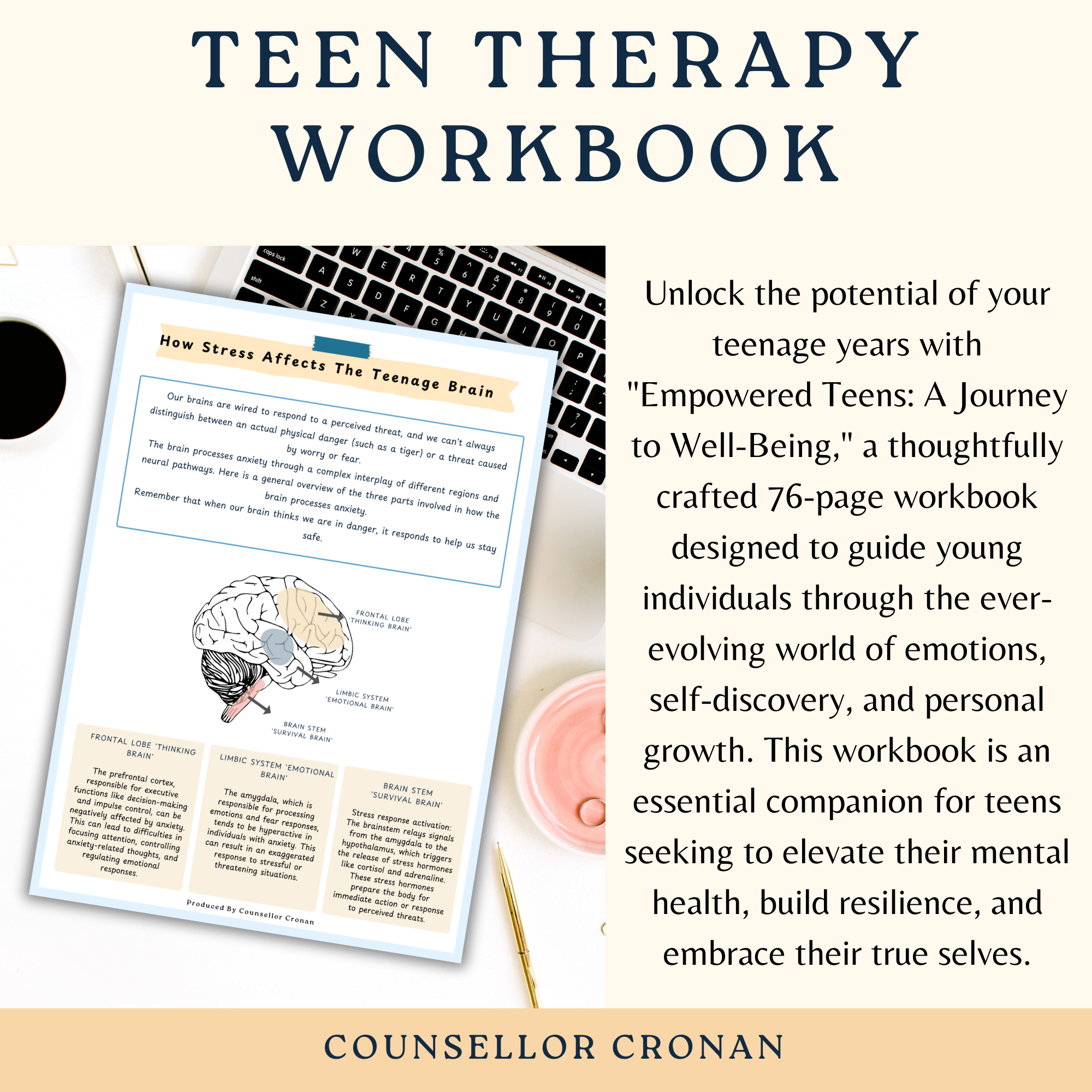 Unlock the potential of your teenage years with "Empowered Teens: A Journey to Well-Being," a thoughtfully crafted 76-page workbook designed to guide young individuals through the ever-evolving world of emotions, self-discovery, and personal growth. This workbook is an essential companion for teens seeking to elevate their mental health, build resilience, and embrace their true selves.