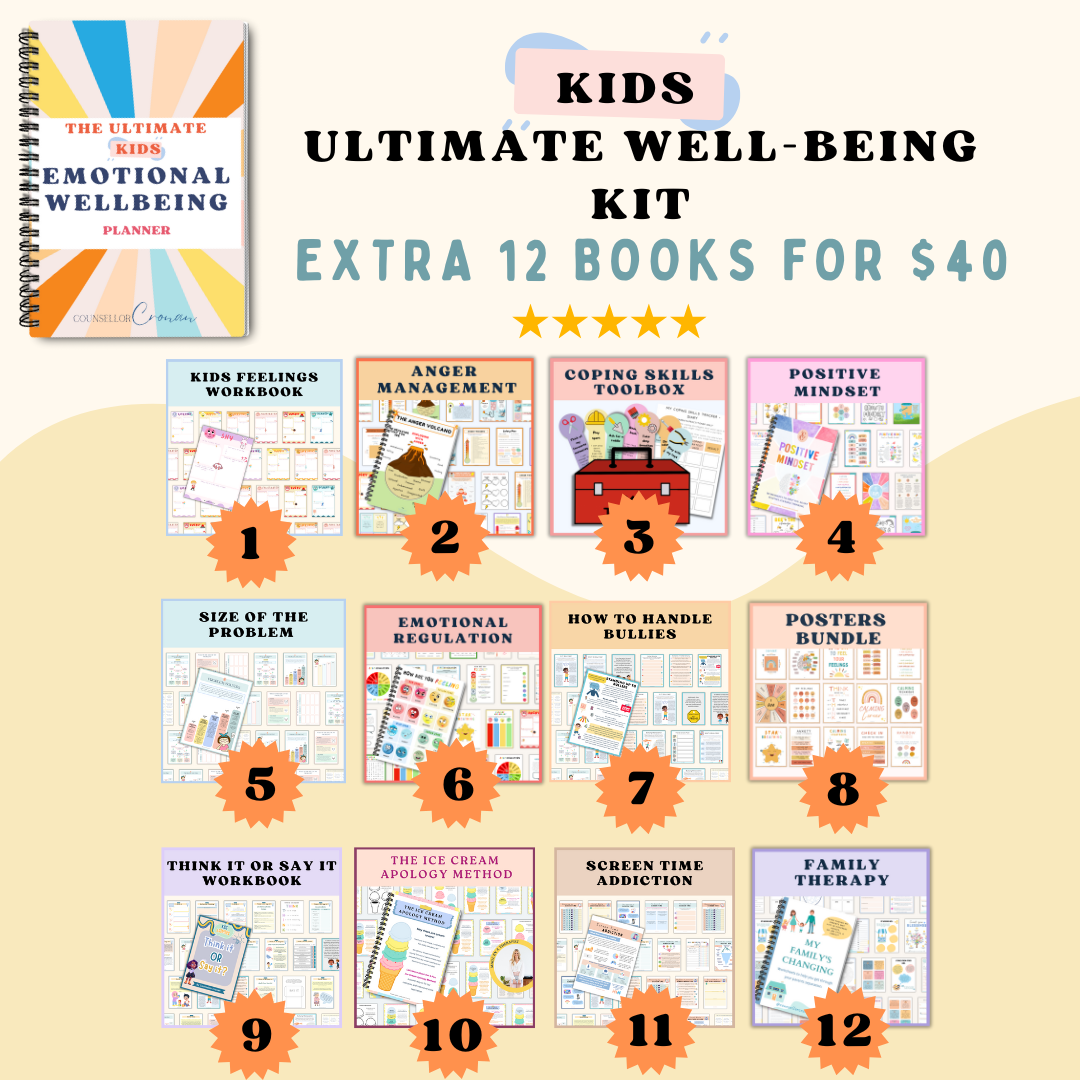 Enhance your toolkit with our exclusive add-on of 12 Essential Workbooks for just $40! Perfect for parents, teachers, kids, and therapists, this bundle is designed to equip you with the vital skills needed for emotional well-being and personal growth.