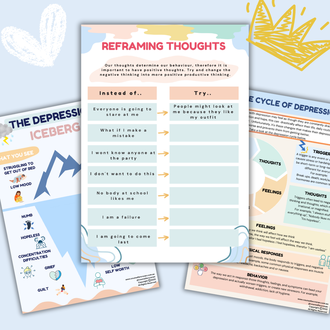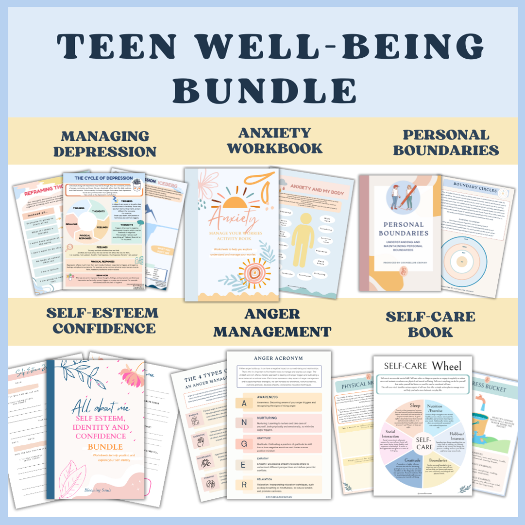 Anxiety and Depression Toolkit: Understand and manage emotions with a comprehensive guide that includes breathing exercises, stress-relief strategies, and self-assessment tools. Workbooks provided are tailored to different age groups, ensuring that both children and adults find techniques that resonate.